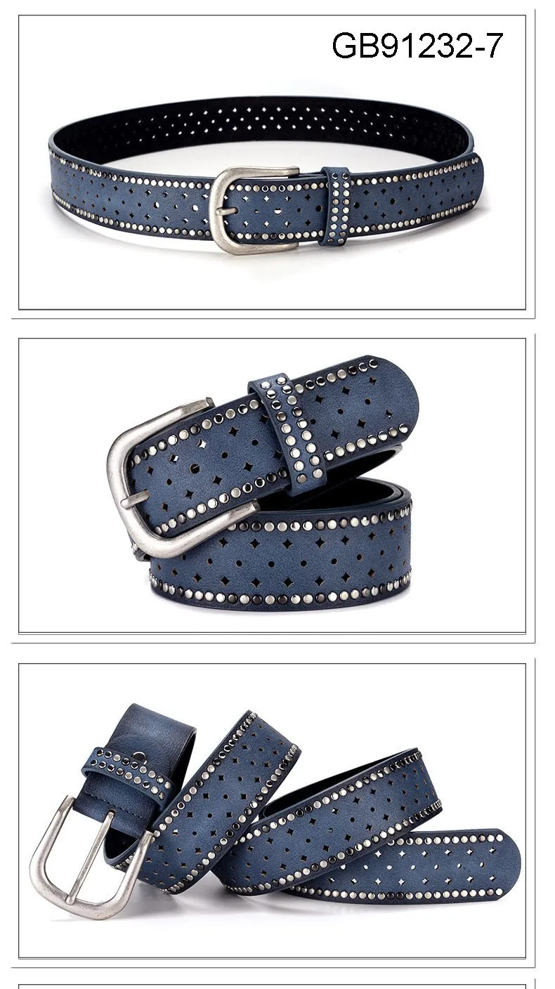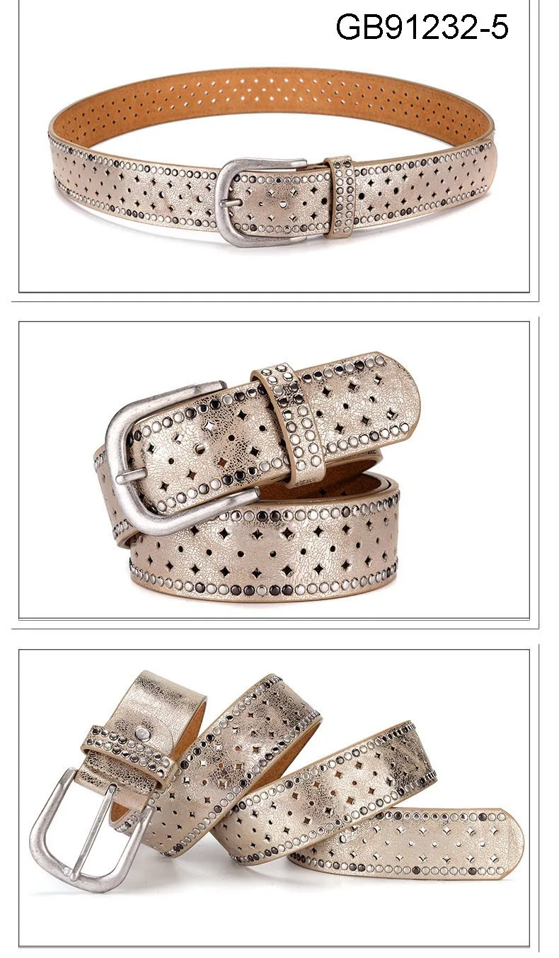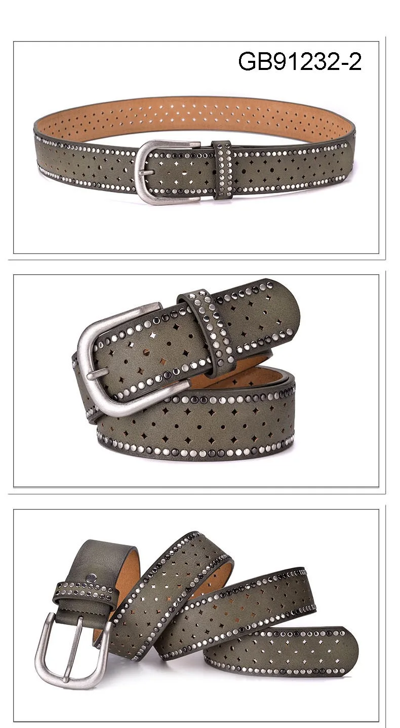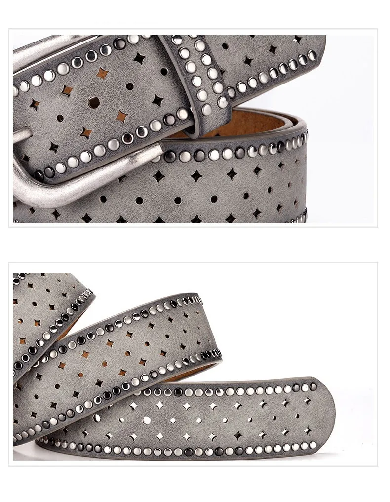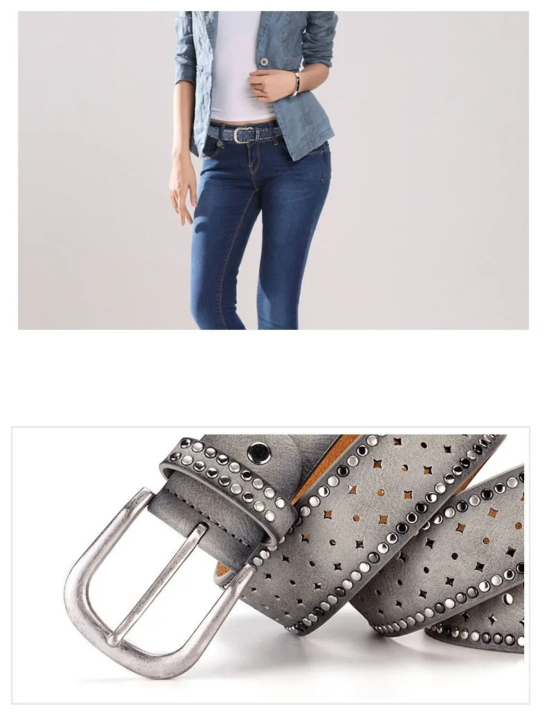 Fashion Women Genuine Leather PU Rivet Buckle Casual Luxury Ladies Belts