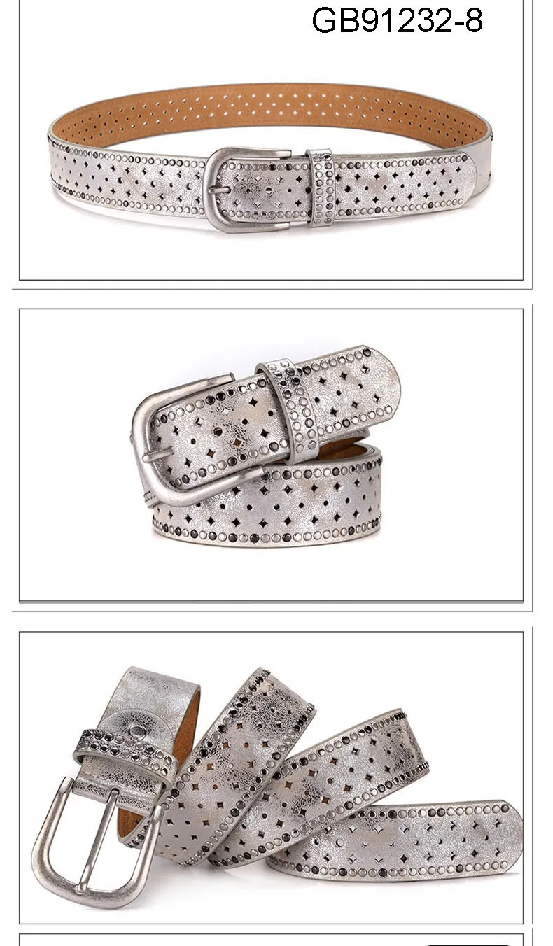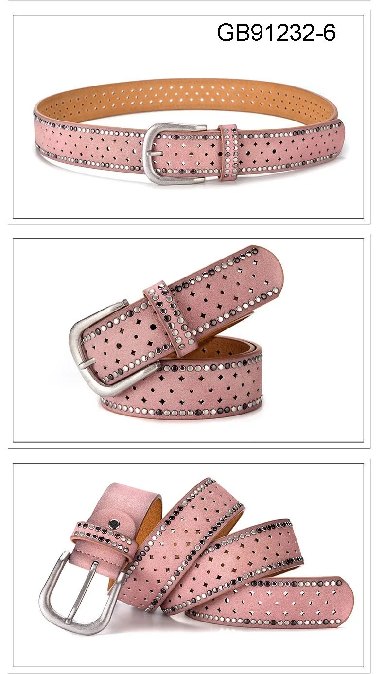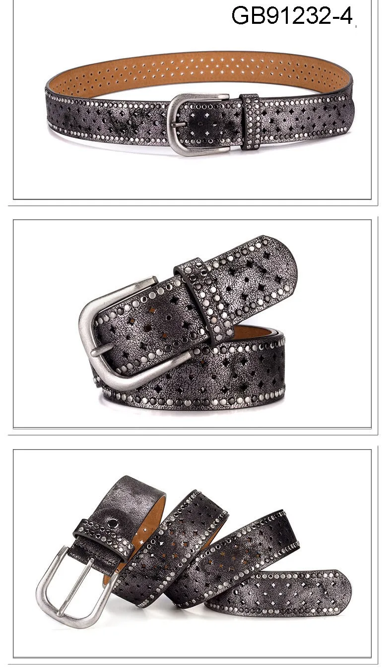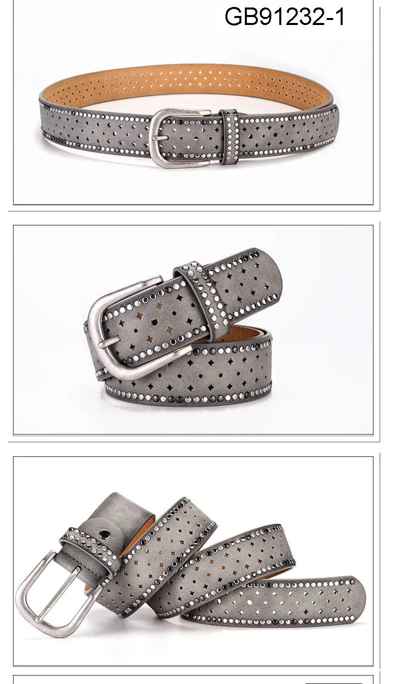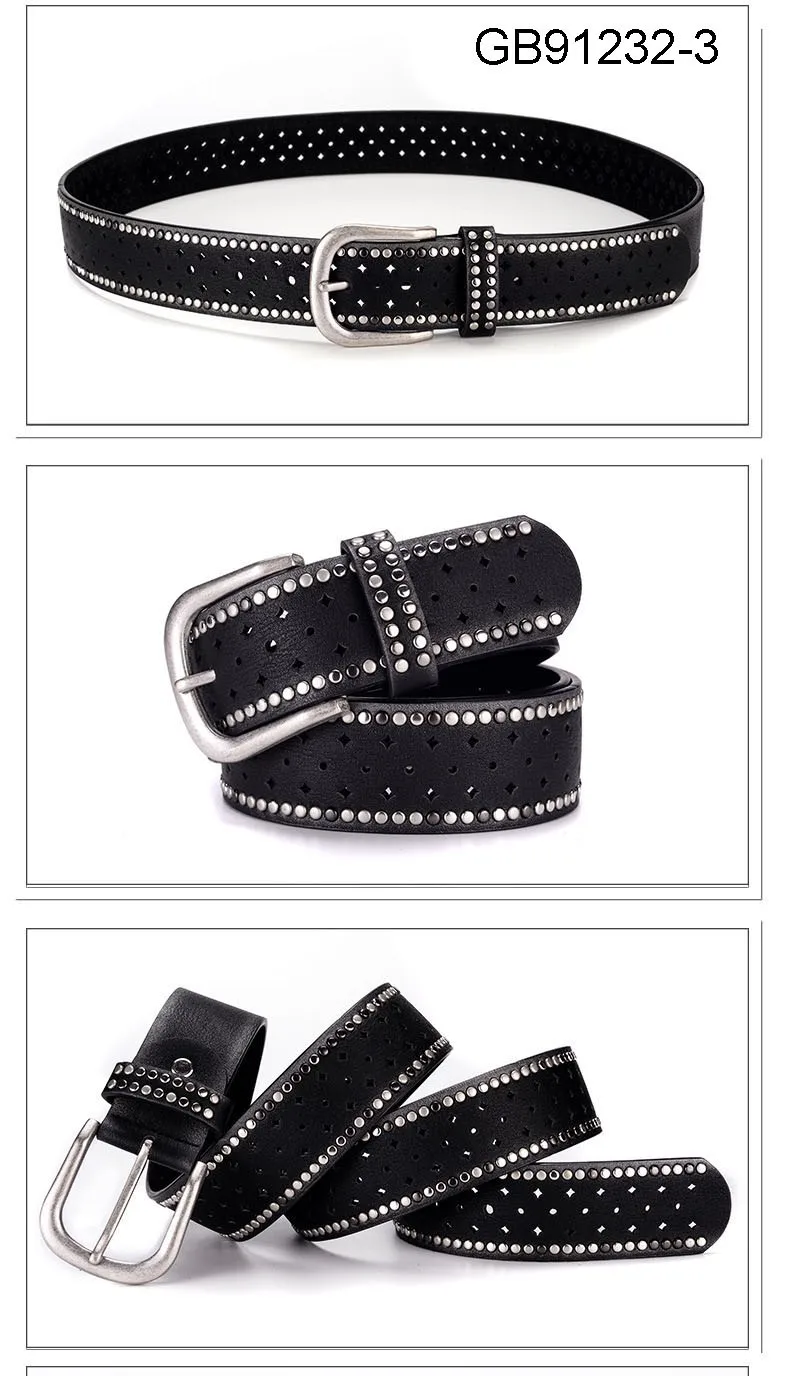 Fashion Women Genuine Leather PU Rivet Buckle Casual Luxury Ladies Belts