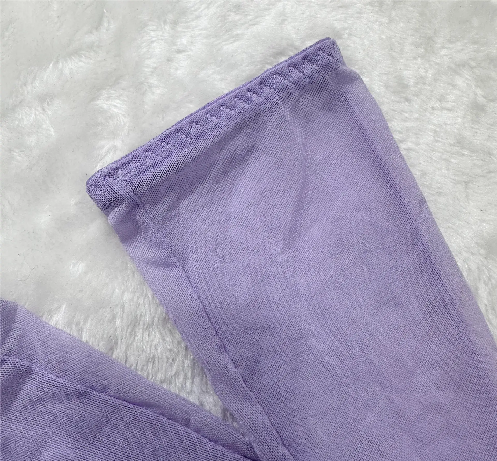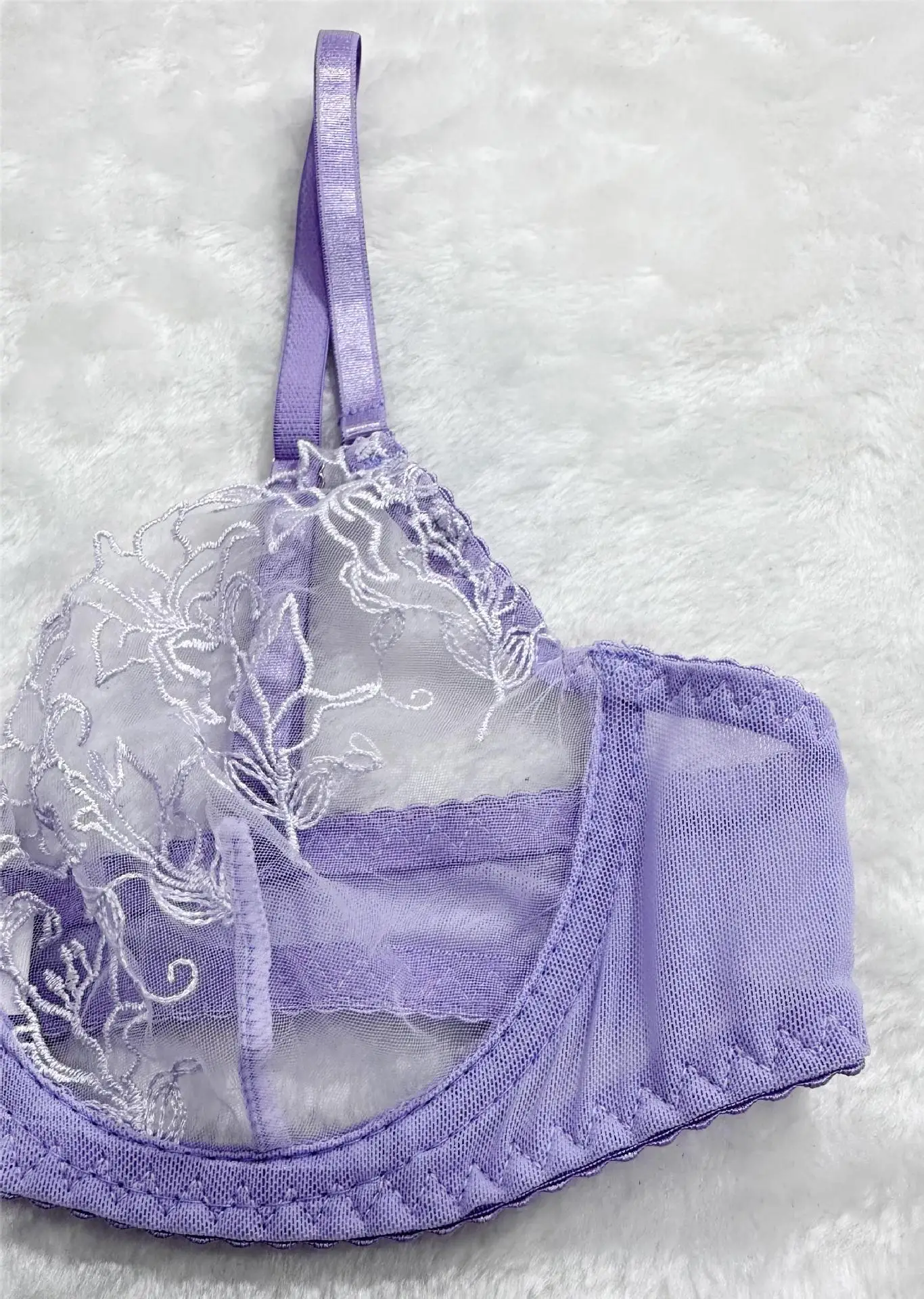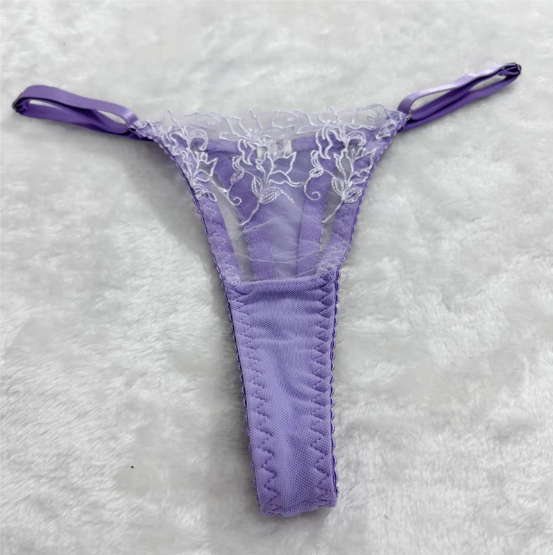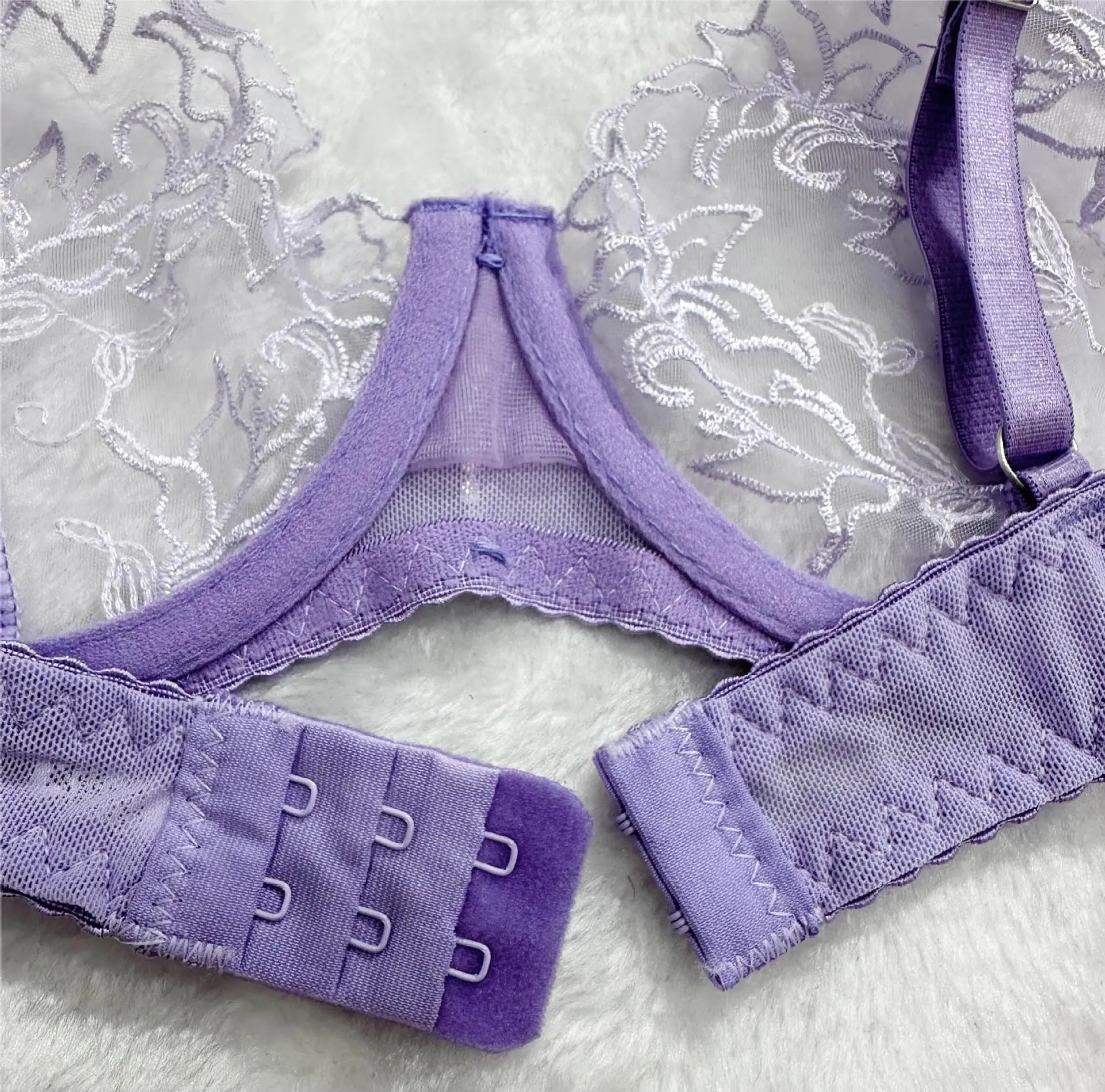 Female Lingerie Purple Sexy Lingerie With Rhinestone Chain Bra And Panty With Gloves Set